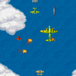 Large planes accompany each enemy wave. Destroying the escorts quickly clears screen space.